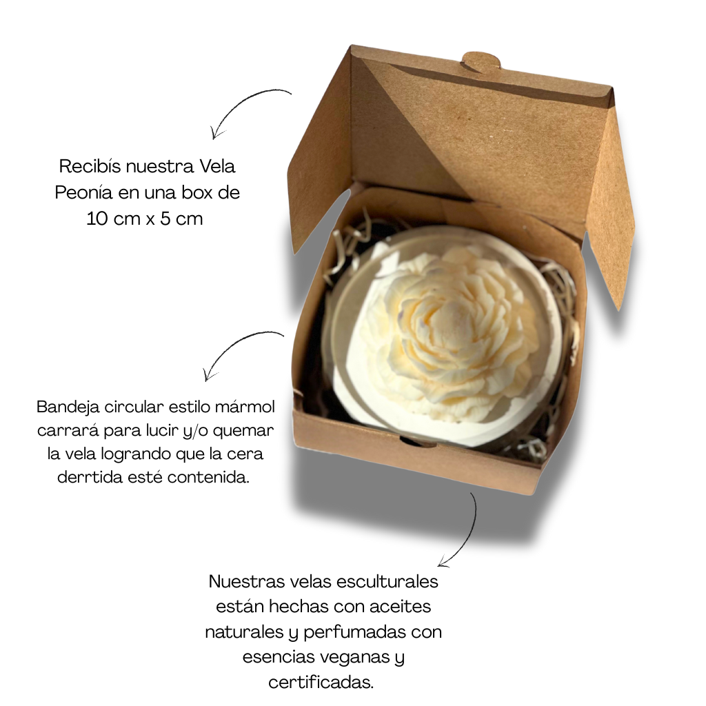 Por supuesto, todo detalle merece unas palabras emotivas, por eso nuestra Vela Peonía va acompañada por una tarjeta donde podemos escribir el mensaje que nos indiques a mano.